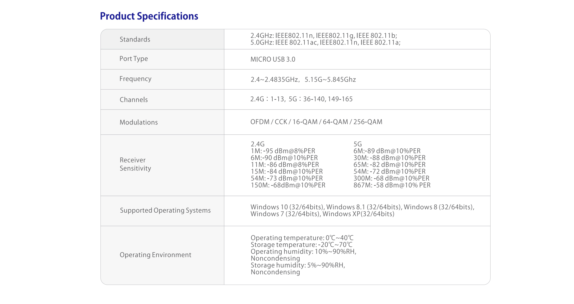 כרטיס רשת אלחותי LB-LINK BL-WDN650A AC650 High Gain Wireless Dual Band USB Adapter