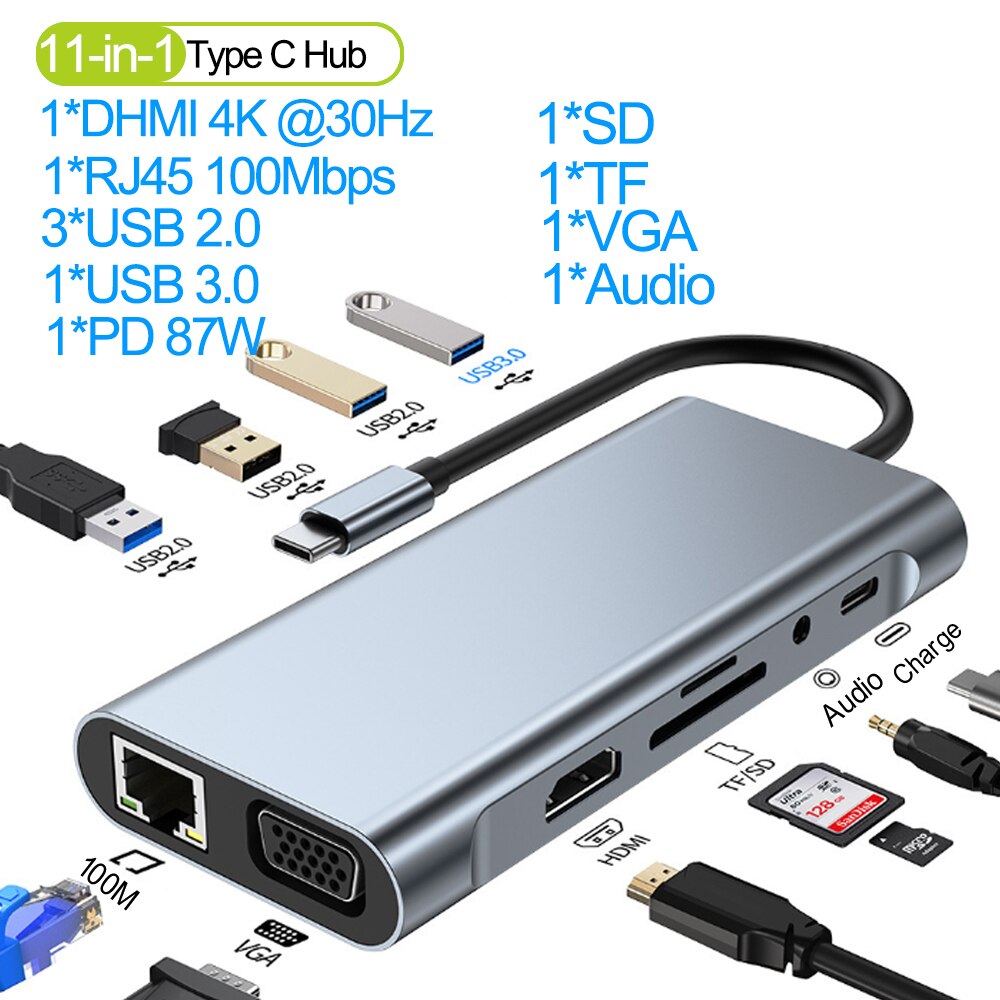תחנת עגינה USB-C ל-11 חיבורים מגוונים BYL-2110