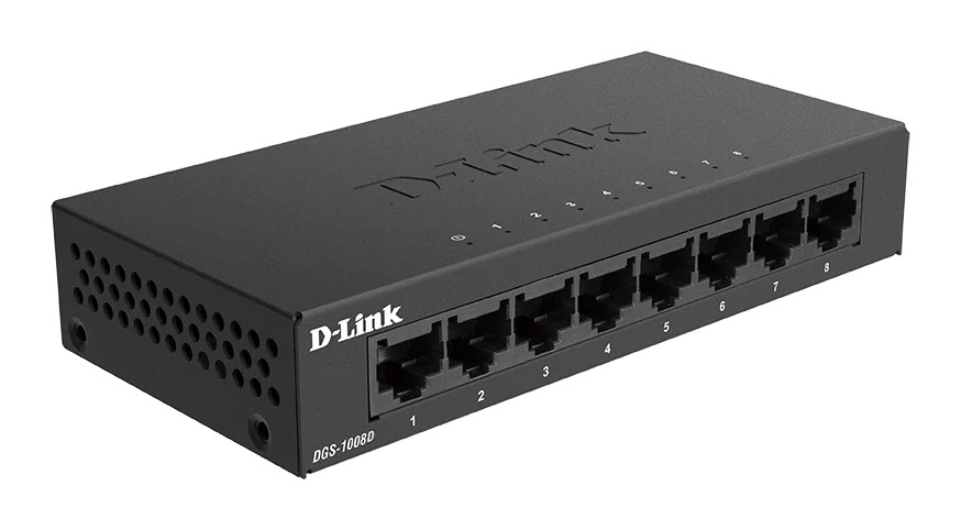 מתג שולחני לא מנוהל עם 8 פורטים במהירות ג׳יגהביט מארז מתכת D-Link DGS-1008D/K2A