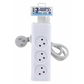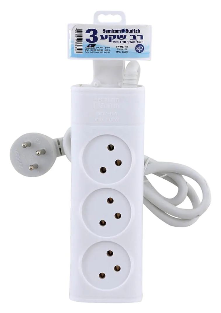 מפצל רב שקע לשקע חשמל ישראלי עם שלושה שקעים וכבל באורך כ- 1 מטר